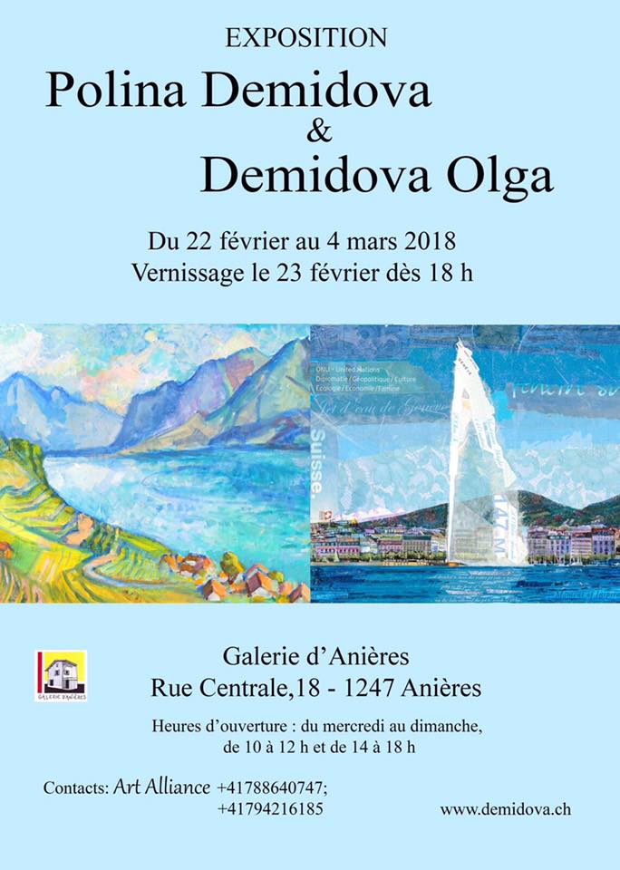 Exposition inédite et rafraichissante autour du paysage mais pas seulement : mère et fille Olga Demidova et Полина Демидова (Polina Demidova) exposent ensemble à la Galerie d’Anières.